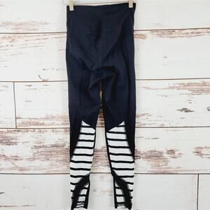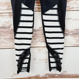 Revolve Body Language Helio Legging in black stripe. Black high rise full length leggings with black and white striped panels and black power mesh inserts. Excellent Preowned Condition, no flaws. Size Medium