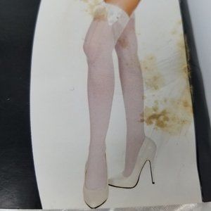 Body Rage Thigh High Hi Nylon M/L White Opaque Top Bow Gothic Punk Alt Cosplay