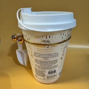 Pink Sky Exfoliating Body Scrub in Vanilla Latte with latte cup and scoop NWT