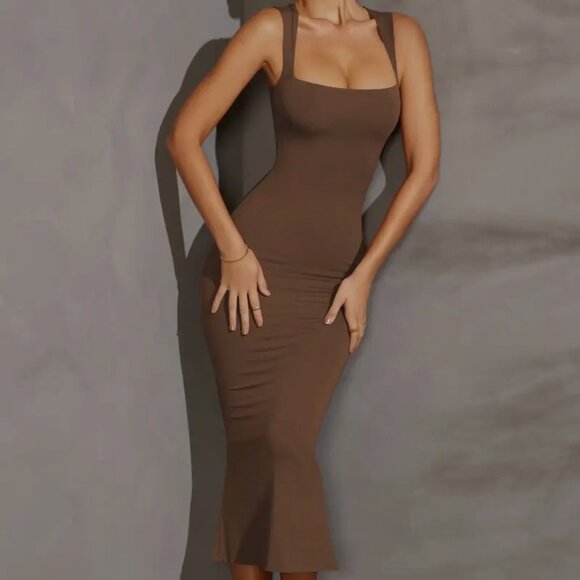 Square Neck Double-Lined Snatching Dress in Ivory.