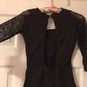 Black Backless Bodysuit. Sequence closure.Lace sleeves