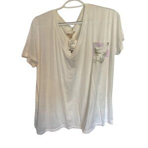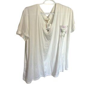 Body Touch Lounge NWT White Floral Pocket V-Neck T-Shirt Sz 3X