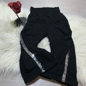 Body Wrappers dance pants. Both sides have silver sequins sewn on them. I got all pants from performance. Worn once.