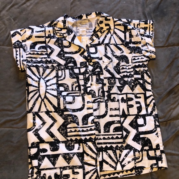 Body black and white button up. Comes with tags from a vintage store. Looks cute tied on the front. Never worn. Comes from a healthy home with a dog.