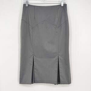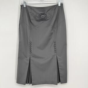 Body by Victoria Midi Pencil Skirt 4 Gray Pleated Buckle Back Button Kick Pleat
