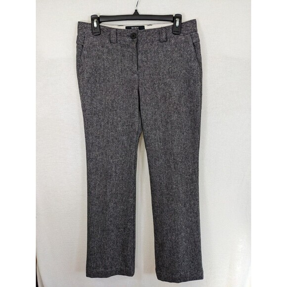 The Body by Victoria The Christie Fit Gray Wool Dress Pants in Women's Size 4 Tall are versatile and stylish pants perfect for various occasions such as travel, parties, casual wear, workwear, and business meetings. Made from a blend of polyester, spandex, and wool, these knit pants feature a zip and button closure, mid-rise fit, and a bootcut leg style. The sleek gray color and solid pattern make them a classic and preppy addition to any wardrobe, while the pockets add functionality to the design. These pants are designed for regular fit and are a timeless piece that can be worn throughout winter, fall, and spring seasons. Ideal for the modern woman looking for a chic and comfortable outfit option.