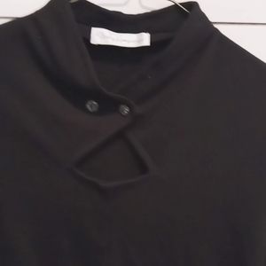 Beautiful long sleeve top with. button front collar or unbutton for casual look. Slightly fitted waist. Very flattering. Size is medium.