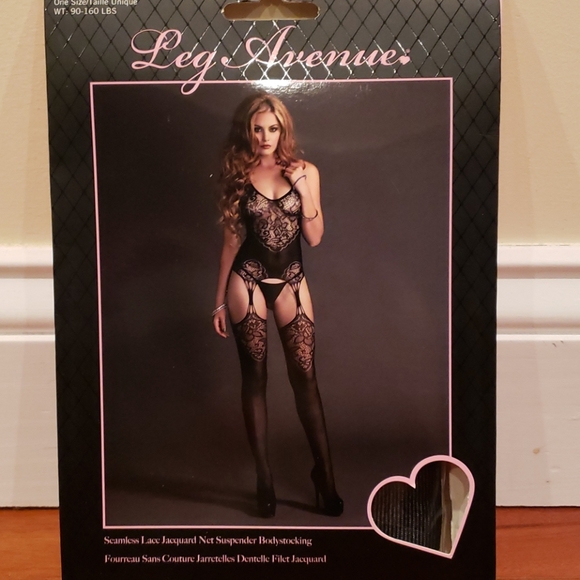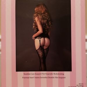 One piece body stocking with garter attached