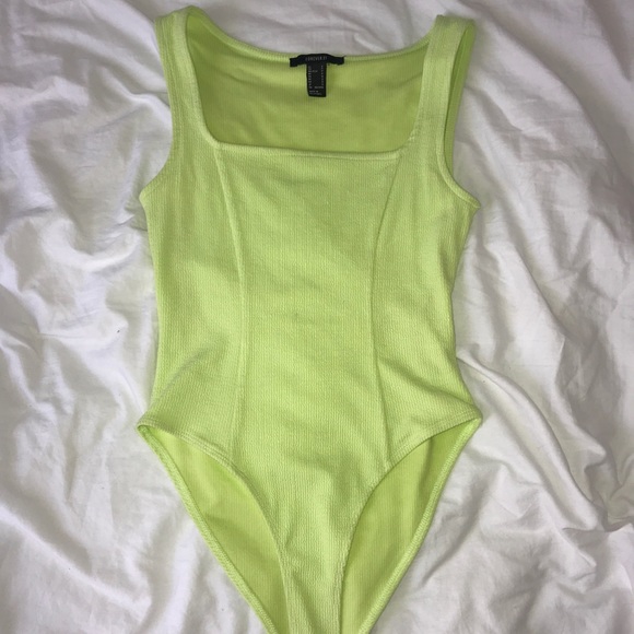 Never worn. Neon body suit. Snap bottoms. Says Medium but fits like a Small