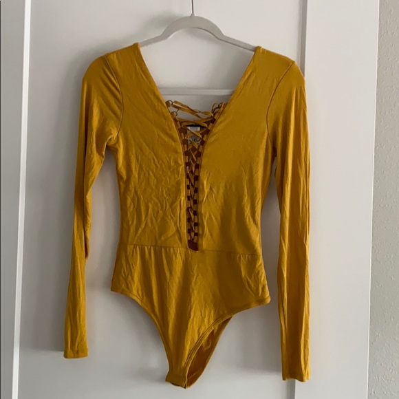 Long sleeve body suit. Crisscross down the front. Very soft material.