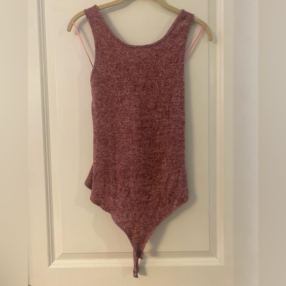 Wine colored. Snapped bottom, crossed back. Crossed back. NWT
