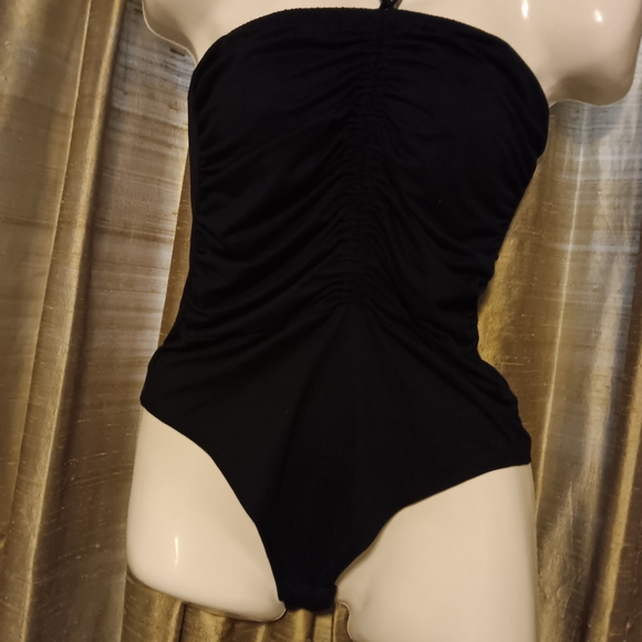 black bodysuit with tie or strapless. stop crotch. size L