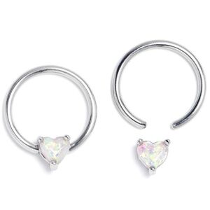 Made with 10mm durable 316L surgical grade stainless steel circular rings & faux opal hearts