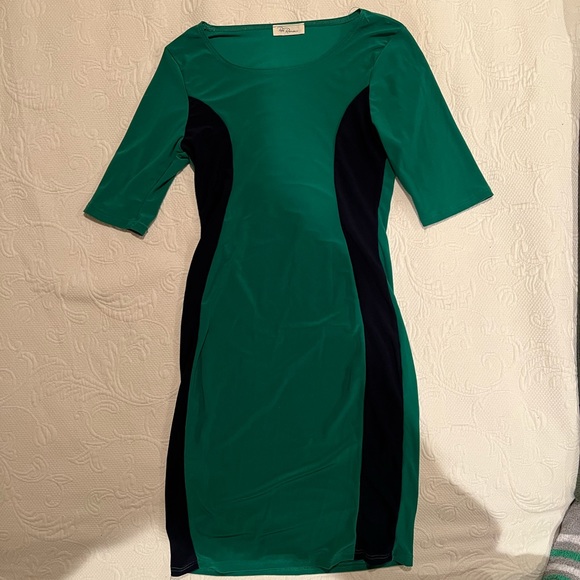This is a navy blue/green dress that is in perfect condition (no damages) and has only been worn once. It fits true to size. Please contact me with any further questions!!