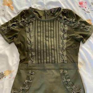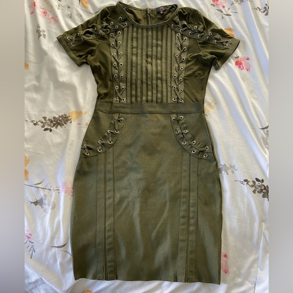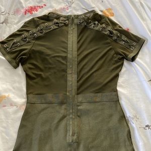Army Green Bodycon dress. Full back zipper. Thicker material on bottom half of dress to give that booty a lift.