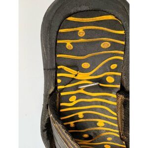 These casual flip-flops are perfect for everyday wear. The dark brown/black base is accented by a textured footbed with eye-catching yellow/gold wavy lines. Made from a comfortable, water-resistant material, these sandals are ideal for the beach, pool, or running errands.