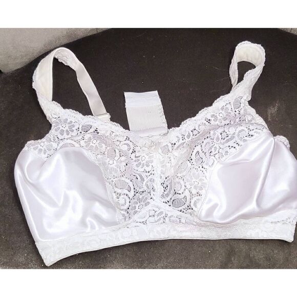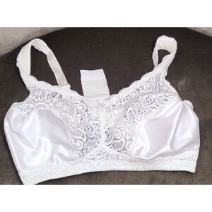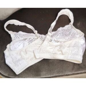 Vintage nylon white bra. No under wire. Lace trim size 42 D