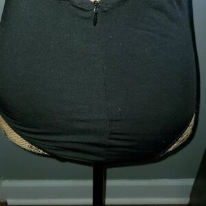 black deep plunge bodysuit with silver metal shoulder padded short sleeves