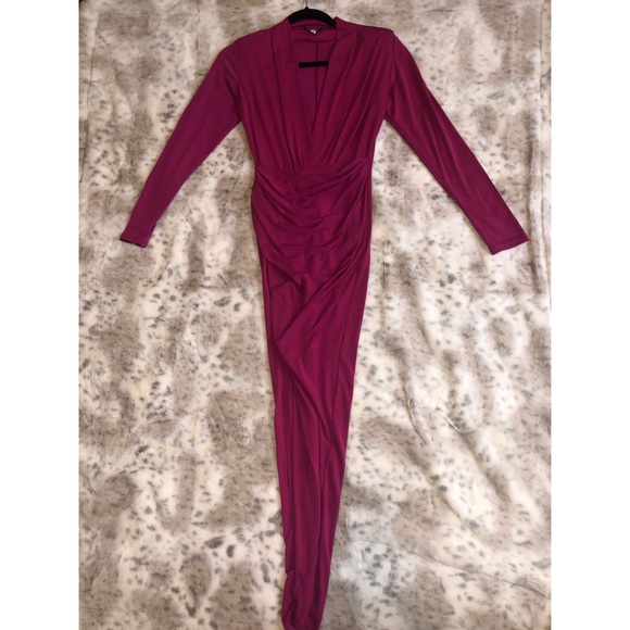 Tight fitting, high low, shoulder pad, high thigh slit