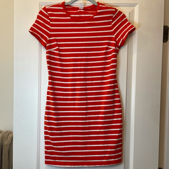 Red stripes are a bit lighter in person Comfortable / flattering fit. Not super tight
