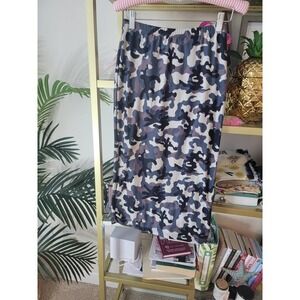 Preowned camo print pencil skirt. Skims the body and is very stretchy, form fitting and figure flattering! In great condition. Perfect for fall. Perfect for going out or a casual outfit as it can be dressed up or down. Elastic stretchy waist.