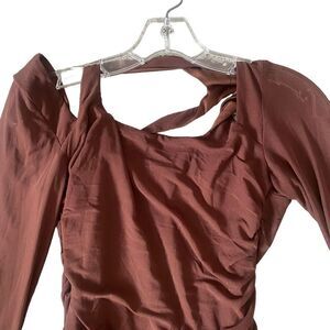 Bodycon Cutout Long Sleeve Mesh Mini Dress Chocolate Brown Size Large NEW