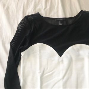 Super cute right bodycon black and white dress. The top part is sheer. Size is small and from Forever 21.