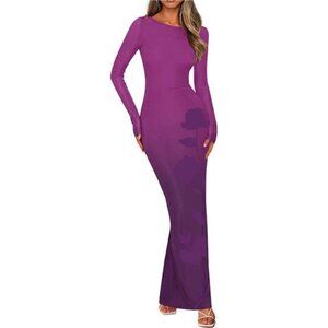 Bodycon Maxi Dress Long Sleeve Sexy Mesh Purple