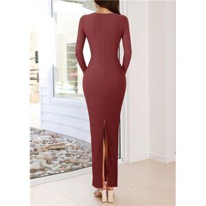 Bodycon Maxi Dress Long Sleeve Sexy Mesh Red
