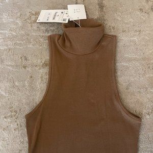 Bodycon Ribbed Turtleneck, Sleeveless Dress Midi