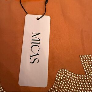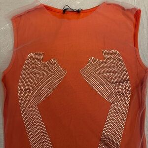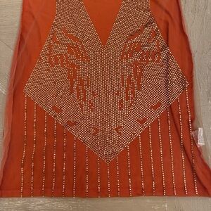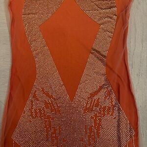 Bodycon SHEER FRONT rhinestone Orange Dress Maximum Impact! TS12 vibes! 🧡