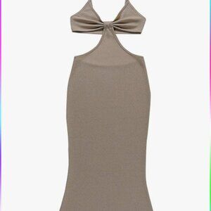Bodycon sexy strappy triangle top maxi dress with open back and sides. 95% cotton 5% spandex. Very soft and comfy. Fits like it's painted on!
