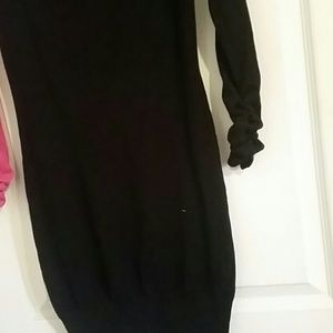 Pink and black bodycon dress, right sleeve is hot pink with a slight opening at chest area. Arms are tightly fitted, 80% Rayan, 20% polyester