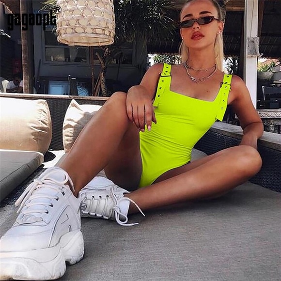 Sexy Bodysuit Has Square Collar Adjustable Strap .