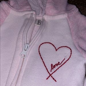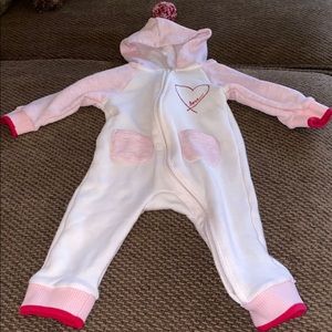 Long sleeve hooded bodysuit with Pom Pom attached to hood. Brand new, worn 1 time for 2 hours.
