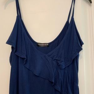 Tank top bodysuit with frilly detail. Thong, with 2 button closure. New never worn. Royal blue.