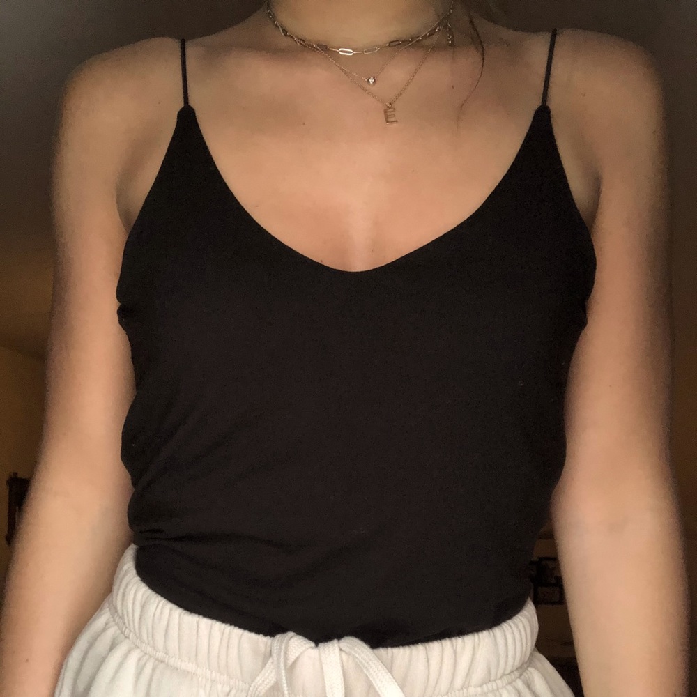 Black cotton bodysuit with skinny straps