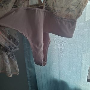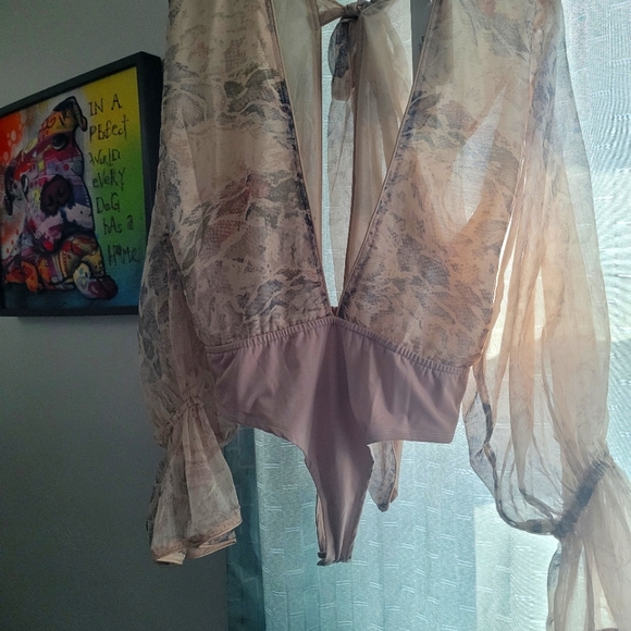 snake skin like cream colored body suit, with open tie back and thong snap closer