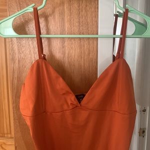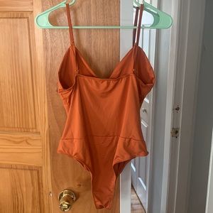 Orange body suit V-kneck Snap bottom Adjustable straps Size M Silky material
