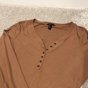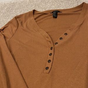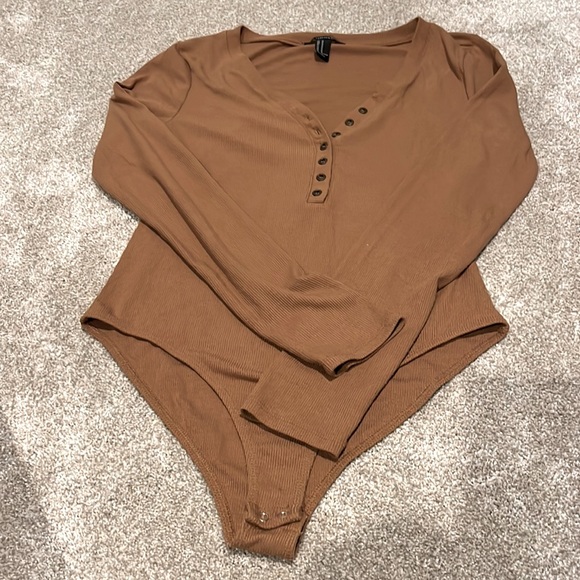 Forever 21 Bodysuit Size M Ribbed Caramel Brown color Buttons down front Snaps underneath Great gently loved condition