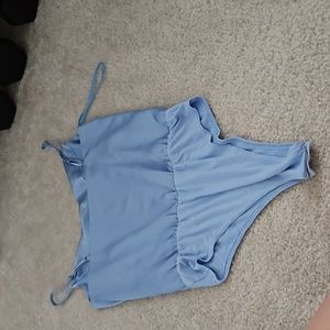 Baby blue bodysuit Has a cowl neck design in the front like new condition never worn