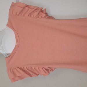 Gorgeous salmon color Size L, fits like a M Ruffle sleeve Ribbed material Crew neck Snap closure at crotch