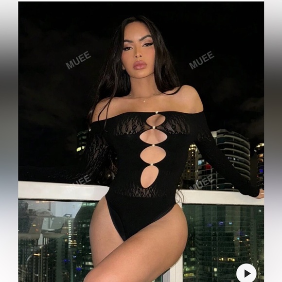 Black off the shoulder bodysuit with pearl details size large runs small never been worn