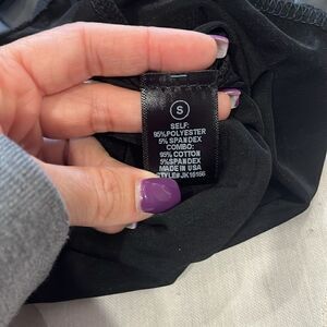 Brand new black body suit in like a plastics material. It is size small. Bottom part is a thong. Still has tag on it.