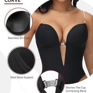 #47 SHAPSHE Backless Shapewear Strapless Deep V Bodysuit for Women Short Torso Tummy Control Built In Bra Body Shaper