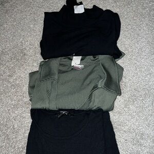 Green body suit Brand new with tag. Size L , black forever 21 bodysuit size s and mockneck bodysuit is size L. They all fit the same/similiar.