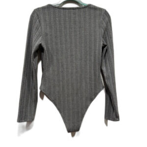 Bodysuit Scoop Neck Gray Long Sleeve Top Stretch Ribbed Academia Womens sz Large