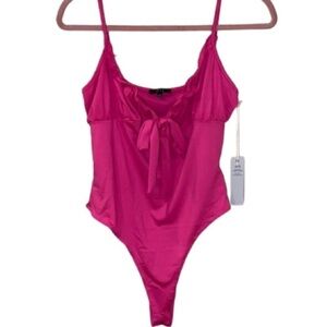 Bodysuit pink barbiecore large stretch ruffled adjustable straps NEW