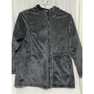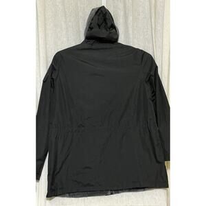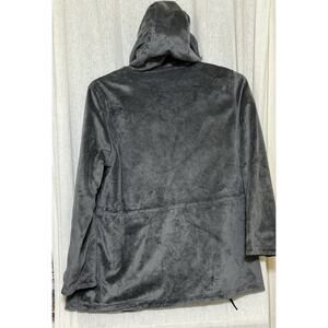 Boeing Woman’s Black Reversible Faux Fur Polyester Coat Zip Up Size XL Hooded