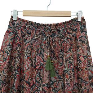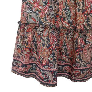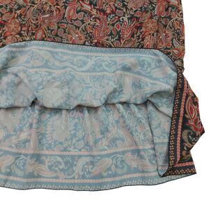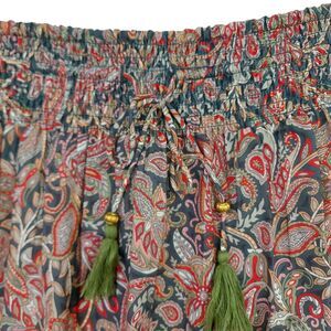 Boemo Long Skirt Womens Large Green A-line Tiered Tasseled Bohemian Paisley